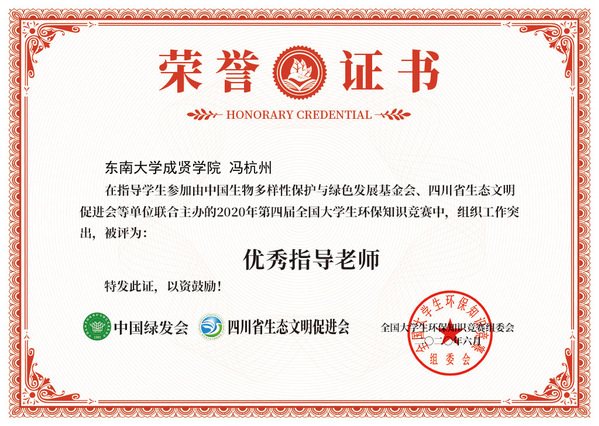 全国大学生环保知识竞赛已成功举办三届,受到各级领导的重视与支持,引起了公众对环保事业的关注,有力地推动了环保理念的普及与深化,在社会上产生了广泛影响。自活动开展以来,国产av 志愿者在团委老师冯杭州的指导下积极筹备,广泛宣传,经过两个多月的比赛国产av 共有九名同学获得全国总决赛的二、三等奖,校青年志愿者协会被评为“优秀协办单位”,冯杭州老师被评为“优秀指导老师”。