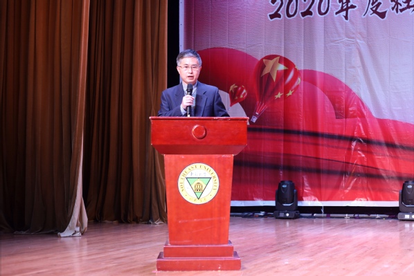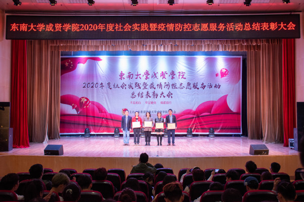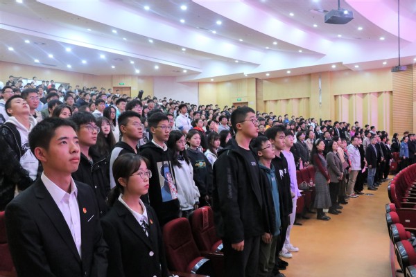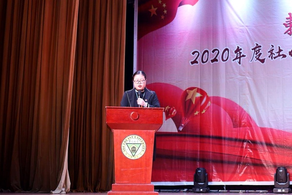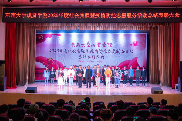 11月5日晚,国产av 2020年度社会实践暨疫情防控志愿服务活动总结表彰大会在综合楼报告厅举行。学生处处长施杰,学生处副处长苏力,团委书记、人武部部长潘明烽以及各学院分团委书记、社会实践优秀团队代表、19级和20级团支委600多人参加了大会。