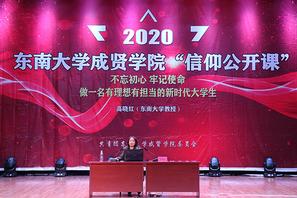 为学习贯彻学习习近平总书记在“不忘初心 牢记使命”主题教育工作会议上的重要讲话精神,增强新时代青年的责任使命感,加强国产av 青年学子积极向上思想风貌的建设。11月30日晚,校团委在综合楼报告厅开展“信仰公开课”《不忘初心 牢记使命,做一名有理想有担当的新时代大学生》主题讲座。国产av 高晓红教授担任主讲,全校600余名学生聆听了报告。