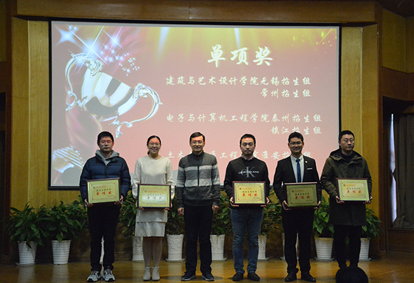 常务副院长许映秋宣读表彰决定,对2020年招生宣传工作的13个先进集体和11名优秀个人进行表彰。先进集体经济管理学院南通招生组程希羲老师和优秀个人代表胡飞雄老师分别发言,结合实际招生工作经验分享招生工作的感悟。