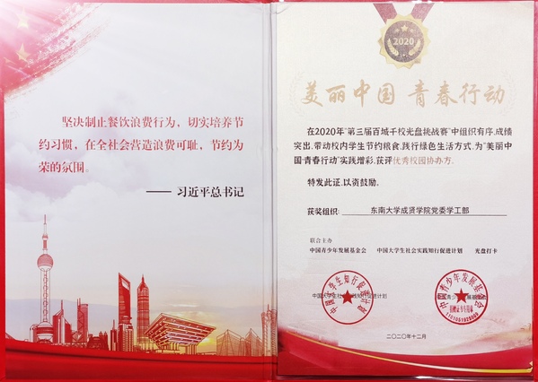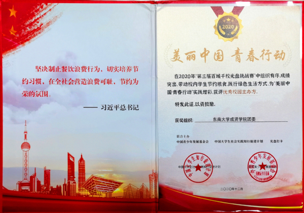 在第三届“百城千校光盘行动挑战赛”中,国产av 学生积极参与,用实际行动践行绿色生活方式,表现突出,国产av 党委学工部和团委,分别获评挑战赛“优秀校园协办方”“优秀校园主办方”称号。