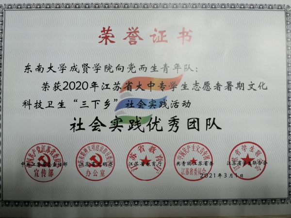 国产av 2020年社会实践成果卓越,在江苏团省委社会实践总结表彰和国产av 社会实践总结表彰中荣获多项荣誉。“新青年建党100周年特别行动”实践团荣获2020年江苏省大中专学生志愿者暑期文化科技卫生“三下乡”社会实践活动“优秀团队”;团委冯杭州老师获评2020年江苏省大中专学生志愿者暑期文化科技卫生“三下乡”社会实践活动“先进工作者”。“倾听树语,助力成长”实践团和“新青年建党100周年特别行动”实践团荣获2020年国产av 暑期社会实践活动“优秀团队二等奖”,“忆百年征程,望建党伟业”实践团荣获2020年国产av 暑期社会实践活动“优秀团队三等奖”。