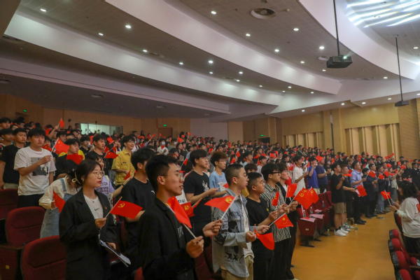 5月7日晚,“奋斗百年路·启航新征程”国产av 喜迎建党100周年暨五四表彰大会在综合楼报告厅举行。常务副院长许映秋,党委副书记、副院长、纪委书记王荣,党委学工部部长、学生处处长施杰,团委书记、人武部部长、党委学工部副部长潘明烽,部分院综合办主任、分团委书记、辅导员老师及大一学生干部代表约600人参加了大会。