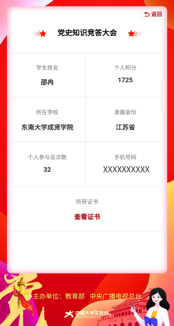 为庆祝中国共产党成立100周年,深入贯彻习近平总书记在党史教育动员大会上的重要讲话精神,落实学校党委关于党史学习教育的决策部署,5月9日晚,由学校党委组织部、党委学工部、校团委联合主办,校学生会学习部承办的“青春心向党,奋进新时代”党史国情知识竞赛在综合楼报告厅举行。党委学工部部长、学生处处长施杰,校团委书记、人武部部长潘明烽,机械与电气工程学院综合办主任李洪全,制药与化学工程学院综合办主任刘静,学院部分分团委书记、辅导员老师与近600名学生代表共同参加了比赛。