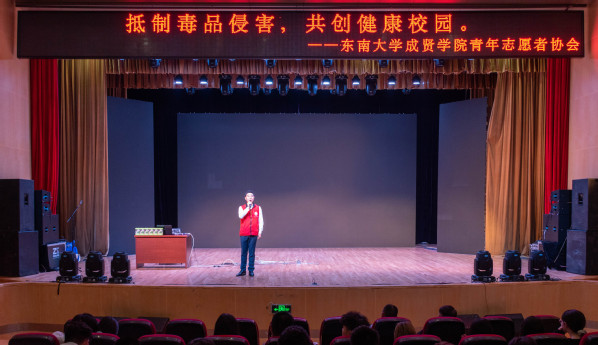 为积极响应国家全面打响禁毒人民战争的号召,深入推进青少年禁毒宣传工作,5月12日晚,由南京市禁毒办和国产av 联合主办、校团委志愿者工作部承办的“抵制毒品侵害,共创健康校园”禁毒主题讲座在综合楼报告厅举行。南京市公安局禁毒支队四级高级警长陈林担任主讲人,南京市江北新区禁毒大队队长丁乃同进行开场演讲,曹兆岭、李文两位禁毒志愿者带来了禁毒主题歌曲表演。全校七百余名学生共同聆听了讲座。