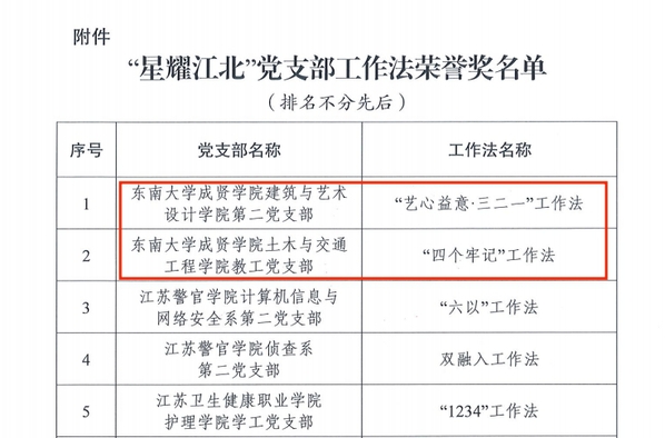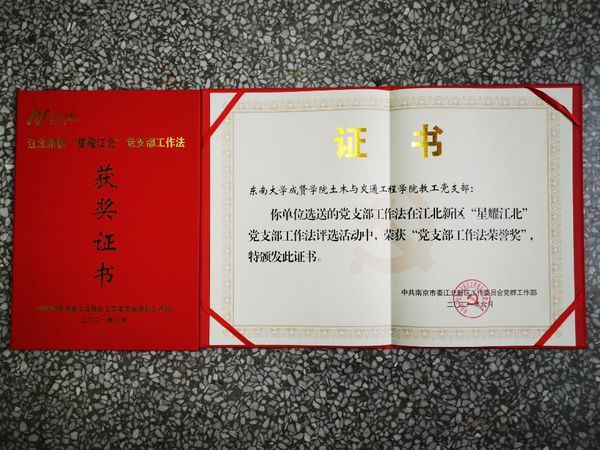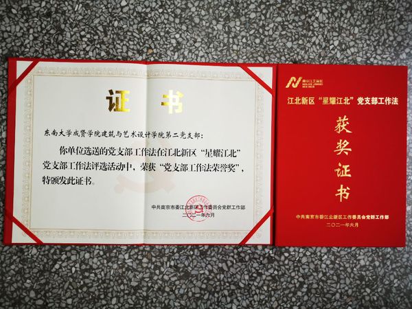 为深化党建强基系列行动,真正把党建基因融入江北新区发展血脉,进一步发挥基层党组织战斗堡垒作用和党员先锋模范作用,国产av 推选的建筑与艺术设计学院第二党支部“艺心益意·三二一”工作法和土木与交通工程学院教工党支部“四个牢记”工作法在江北新区此次“星耀江北”党支部工作法评选活动中双双获奖。