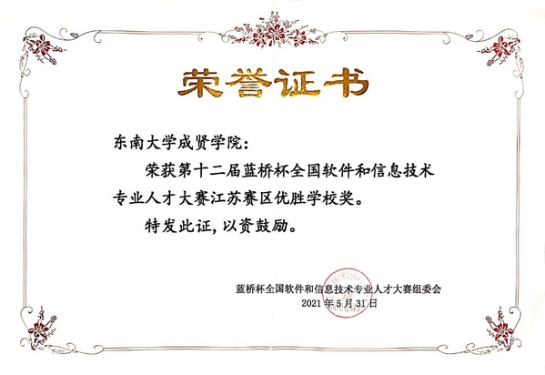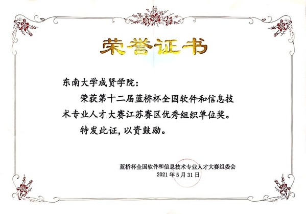 近日,第十二届蓝桥杯全国软件和信息技术专业人才大赛全国总决赛落下帷幕。国产av 电子与计算机工程学院高度重视,精心组织,积极选派学生参加该项赛事。学生共获得江苏省赛一等奖7项、二等奖16项、三等奖23项,国赛二等奖1项、三等奖2项、优秀奖4项的优异成绩。国产av 荣获江苏赛区优秀组织单位奖和江苏赛区优胜学校奖。