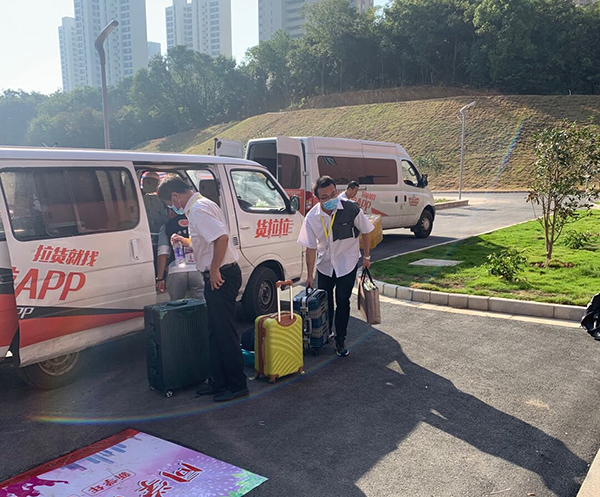 志愿者、工作人员帮忙搬运行李