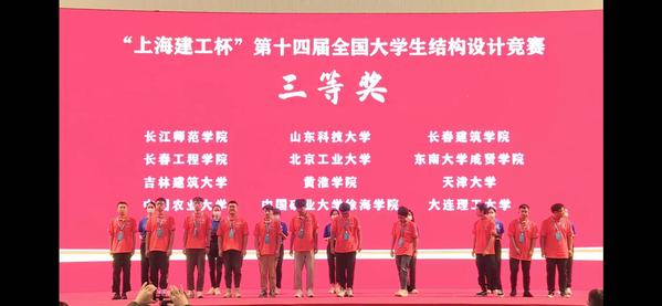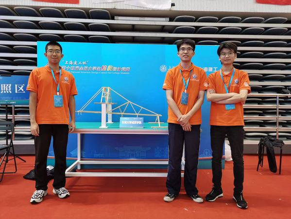 2021年“上海建工杯”第十四届全国大学生结构设计竞赛于10月14日-17日在上海交通大学举行。由土木与交通工程学院2018级本科生禹湘,2019级本科生张吴桐、鄢佳耀组成的国产av 代表队,与来自全国的包括清华大学、同济大学、东南大学、浙江大学、上海交通大学在内的111所高校112支竞赛队伍同台竞技,在土木与交通工程学院郭应征、温旭丽、刘美景等领导带队,陈素芳、刘丹两位老师指导下,从111所高校112支参赛队伍中脱颖而出,最终荣获三等奖。