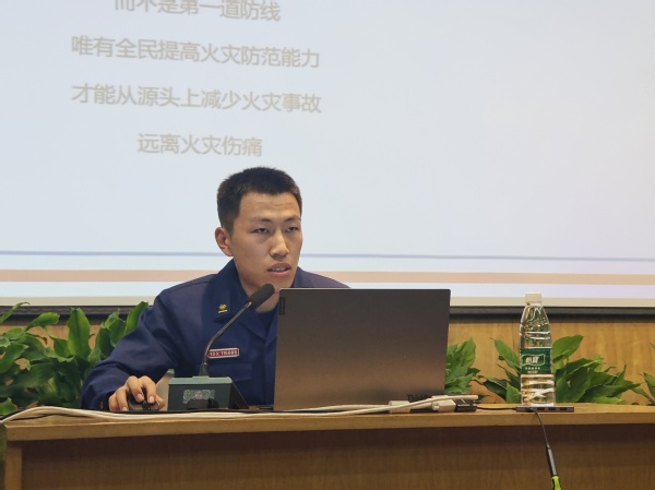 朱警官以事后“救”不如事前“防”为切入点,用短片“有一种误读,叫万能的消防员”开场,生动诠释了消防“防范为主,防消结合”的理念,详细介绍了常见消防标识、设施,常见消防器械使用方法,结合“一分钟能做什么”短片形象地展示了防火十法、灭火十招、失火逃生法,紧贴实际的影音多媒体运用增强了授课的可看性,强化了相关消防知识的入脑入心。