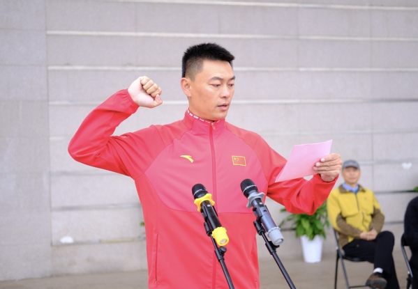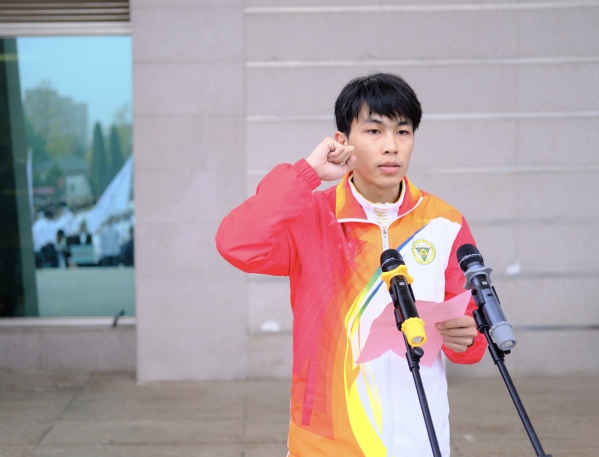 王荣副书记宣读《关于表彰2020-2021学年十佳运动员和体育先进工作者的决定》和第十六届学生田径运动会表演方阵获奖单位,并由参会嘉宾和校领导为代表颁奖,运动员代表莫庸同学、裁判员代表丁亮老师分别代表运动会运动员和裁判员郑重宣誓。蒋波书记宣布本届运动会开幕。