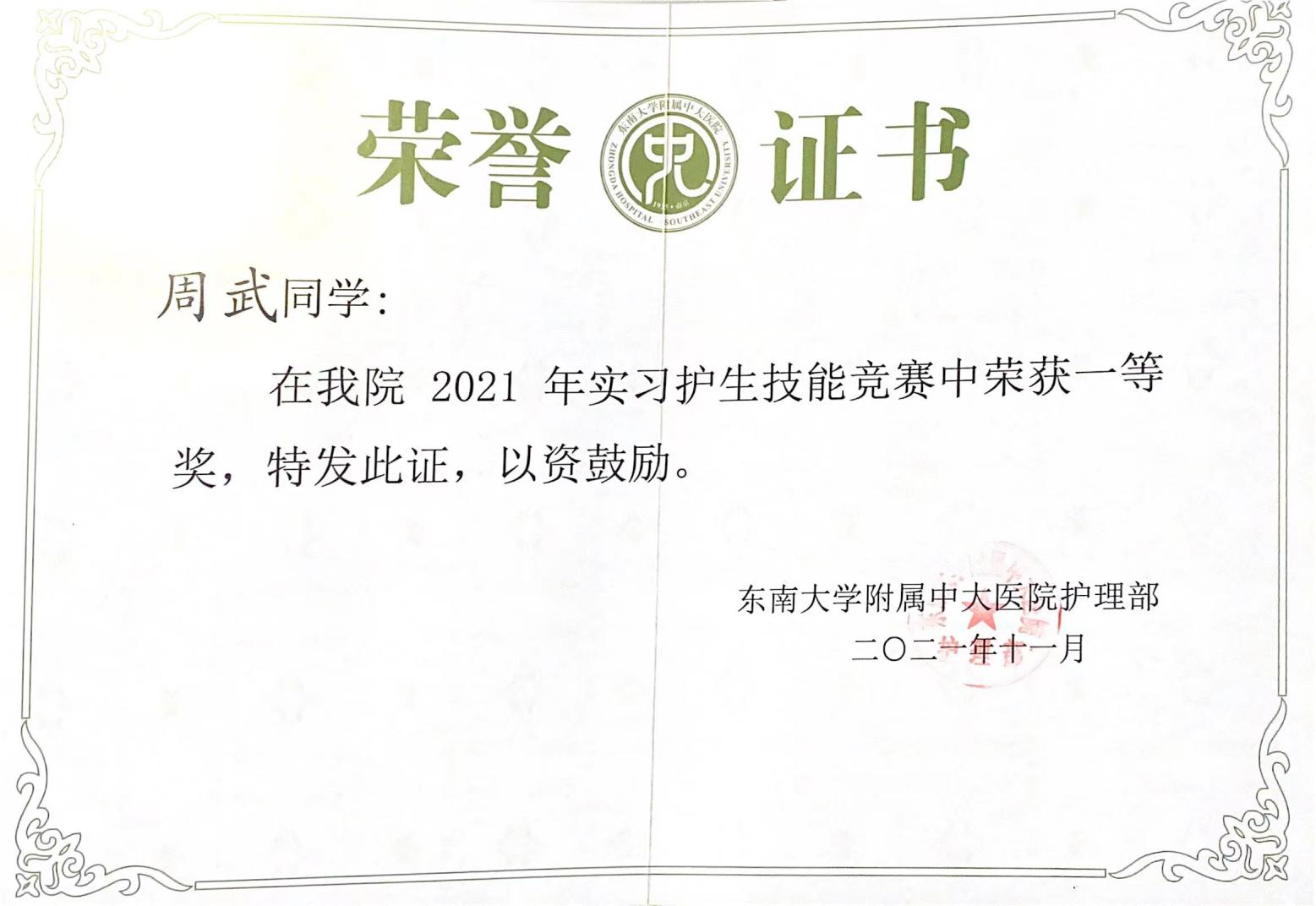 2021年10月下旬,国产av 附属中大医院护理部开展了以提高护理实习生临床技能,增强护理实习生学习积极性和主动性为主旨的操作竞赛,经过为期一周的选拔和抽签,最终有11名同学代表国产av 参加本次比赛。比赛项目共有两项,分别为单人院内心肺复苏技术(CPR)和无菌技术。通过专业评审团的现场打分以及工作人员赛后的反复核对,我院18级护理专业周武同学在本次比赛中荣获一等奖。