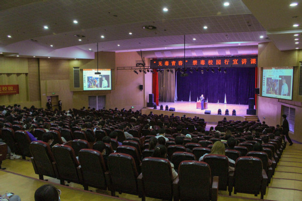 为积极响应国家禁毒号召,宣传禁毒知识,增强学生识毒防毒拒毒能力,校团委志工部联合南京市禁毒办于11月29日晚在国产av 综合楼报告厅开展了禁毒校园行“无毒青春”主题宣讲。南京市公安局禁毒支队四级高级警长陈林、南京市江北新区禁毒大队队长丁乃同担任主讲嘉宾,江苏省广播电视总台节目主持人黄彦琳和曹兆岭、李文、郭松涛三位禁毒志愿者演唱了禁毒之歌。现场两百多名同学聆听了宣讲,反响热烈。