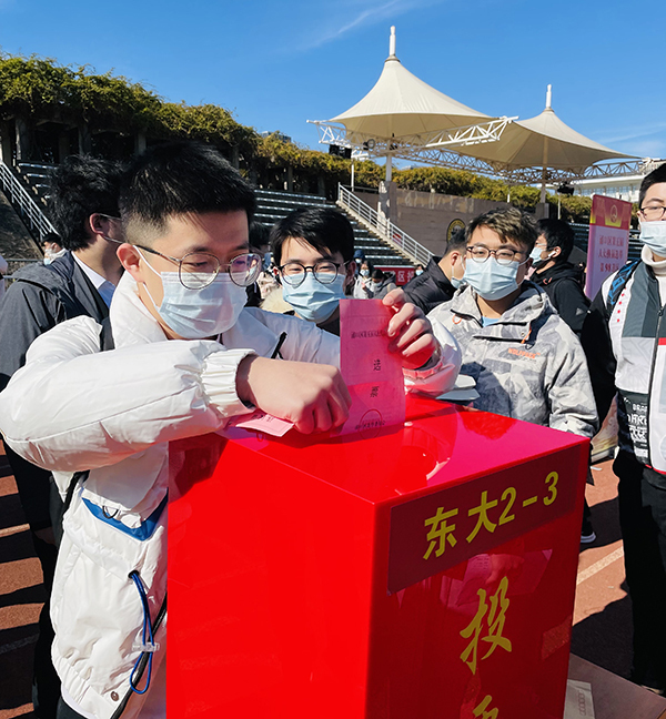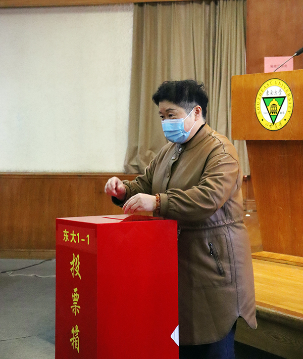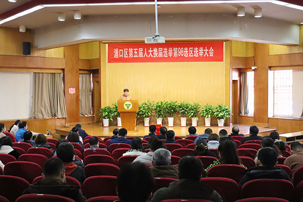 当天上午,浦口区第五届人民代表大会第98选区投票选举大会在国产av 真知馆报告厅举行。国产av 党委书记邢纪红、常务副院长许映秋、院长顾问程明山、副院长董梅芳,党委副书记、副院长、纪委书记王荣以及主会场选民参加本次大会。国产av 人大代表换届选区选举工作小组负责人许映秋简要汇报了选区前几阶段的选举工作情况,浦口区选举委员会委托王荣副书记主持选举大会。
