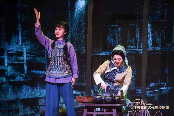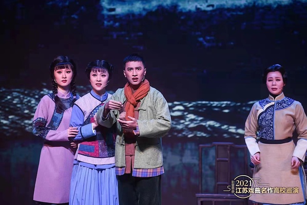 12月16日晚,由省委宣传部、省教育厅主办、校团委大学生艺术指导中心承办,常州市锡剧院创排演出的“2021年度江苏戏曲名作高校巡演”锡剧党课《烛光在前》在国产av 综合楼报告厅举办。