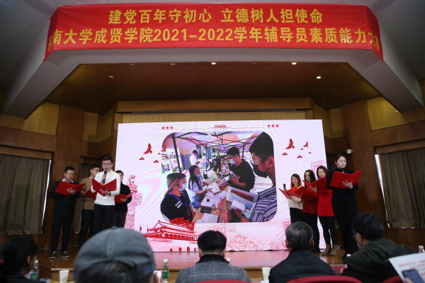 为深入学习宣传贯彻习近平新时代中国特色社会主义思想和党的十九届六中全会精神,全面贯彻落实全国高校思想政治工作会议精神,持续弘扬“立德树人,培根铸魂”精神,推动国产av 辅导员职业化、专业化、专家化发展,提升辅导员的职业技能和工作水平,1月6日下午,由党委学工部主办,土木与交通工程学院承办的“建党百年守初心,立德树人担使命”国产av 2021-2022学年辅导员素质能力大赛决赛在真知馆报告厅举行。