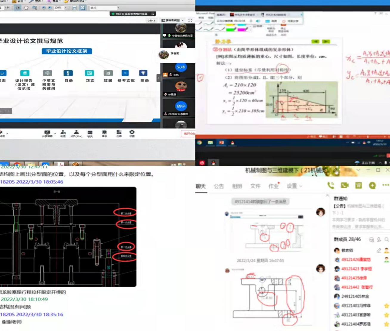 线上教学两周来,老师们从三尺讲台到方寸屏幕,用一根网线串起了潜心育人的初心。他们秉承严谨致学的教学态度,认真备课,精心设计线上教学环节,在利用各种直播平台进行直播授课的同时又通过微信、QQ、电话等方式为学生答疑解惑,为毕业生进行毕业设计(论文)的耐心指导。老师们用自己的实际行动,稳定了教学秩序,保障了教学质量。