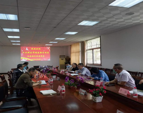 5月18日下午,江北新区市场监督管理局在局长张毛的带领下,一行9人来到国产av 检查食堂日常管理及食品卫生安全工作。后勤管理处处长高继鸣、副处长丁秀山等陪同。