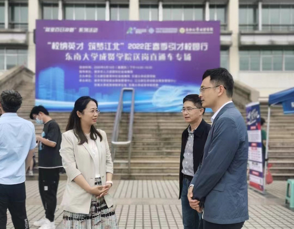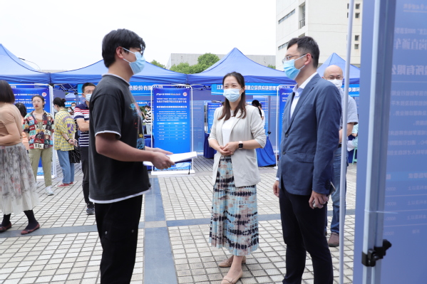 三、企业进校。5月19日、20日,学校党委副书记、副院长、纪委书记王荣,学生处处长施杰参加了江北新区、建邺区春季引才校园行走进国产av 专场招聘活动。王荣副书记与参会单位代表、学生亲切交谈,悉心了解企业需求和毕业生求职进展,并鼓励毕业生树立正确就业观,抓住机遇,尽早就业。此次参加招聘企业共68家,提供岗位数1100余个,共收取简历430份,186人初步达成就业意向。