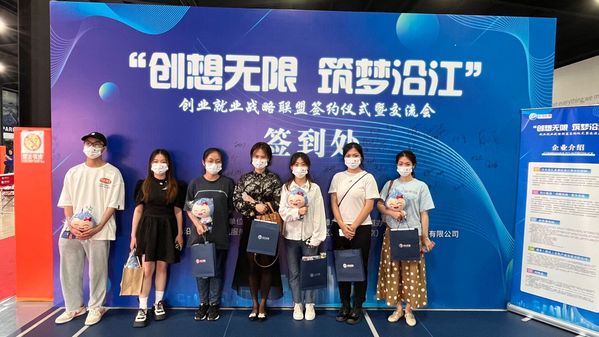 近日,由江北新区教育和社会保障局、沿江街道办事处主办的2022年度“创想无限 筑梦沿江”创业就业战略联盟签约仪式暨交流会在瑞来T81文化产业园成功举办。经济管理学院2022届毕业班辅导员和毕业生代表应邀参加。
