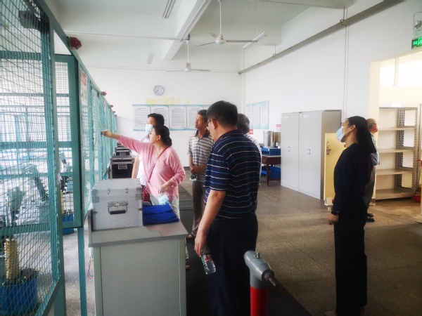 听取汇报后,专家们冒着39 ℃的高温酷暑,巡回检查了有关实验室现场。在土木与交通工程实验实训中心现场,专家们具体询问了行车的定期年检、安全使用及培训情况;在电气工程实验实训中心现场,专家们仔细查看了电机实验室及高电压实验室等实验实训场所的防触电措施,并就强电教学过程中可能出现的安全问题与毛副院长进行了有益的交流;专家们在制药与化学工程实验实训中心现场,重点了解了国产av 危险化学品的使用种类、使用量及采购方式等,检查了国产av 有关危险化学药品的使用、存储及化学废弃物处置等情况,并查看位于后山的危险化学品仓库。