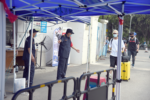后勤服务人员引导学生顺利入校