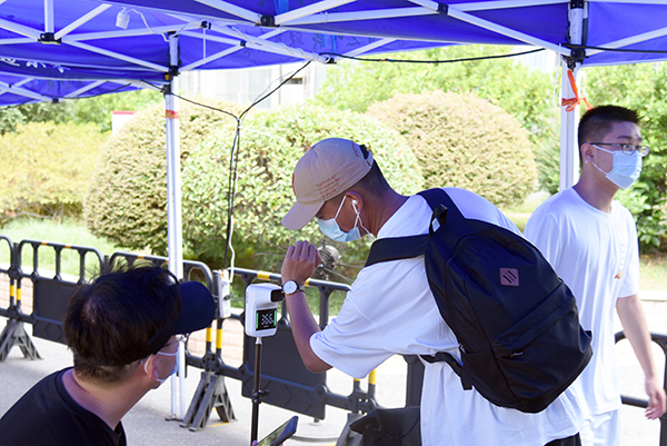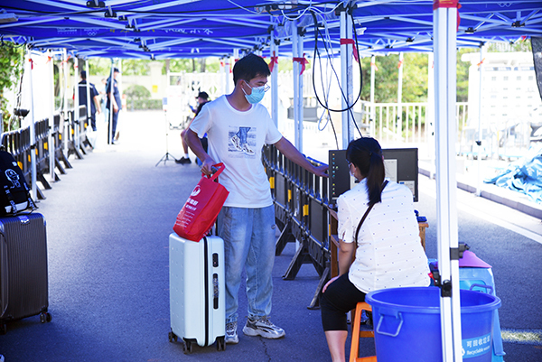 经过前期协调会议等相关准备,全校各单位精心组织、周密部署,层层压实疫情防控工作责任,高度重视学生到校情况。学生进校流程简化清晰,查验健康码、测量体温、核对身份信息等防疫工作按部就班进行;工作人员、志愿者温馨提醒,热情引导,利用小推车、汽车等工具助力帮助搬运行李,协助学生迅速完成进校工作;后勤管理处特准备绿豆汤等解暑饮品为学生与工作人员解暑降温,提供了全方位的周到服务。报到现场井然有序,平稳高效。