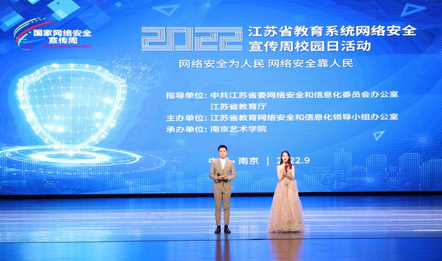 启动仪式上,《江苏省教育系统网络安全暨2022年网络安全宣传周校园日活动倡议书》正式发布,号召广大师生尤其是青少年坚守法律底线,强化安全意识,崇尚社会公德,唱响时代主旋律,做网络法治的建设者、网络安全的守护者、网络文明的推动者、网络正能量的传播者。与会领导和嘉宾还观看了系列主题短片和原创视频作品,欣赏了南京艺术学院师生精彩的主题演出,聆听了江苏省反电信网络诈骗中心专家带来的专题讲座。