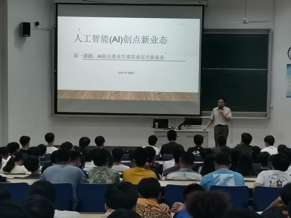 首先,李福兴教授讲解了“AI在你身边”,通过几组图片对人工智能进行了简要的说明,他讲述了人工智能在智慧家居、智慧商贸、智慧农业、工业、医疗领域、安全健康、文旅、社交等领域的应用及创点分析,展现出了中国乃至世界对人工智能的迫切需求。他鼓励同学们对人工智能进行研究创新,以拓宽就业渠道。其次,他给同学们分析了人工智能的不足、行业发展趋势和规划,并对同学们未来的发展提出了殷切的期望。讲座期间,同学们认真聆听了李教授的讲解,积极参与提问环节,把本次讲座推向高潮,展示了同学们对人工智能的极大热情。