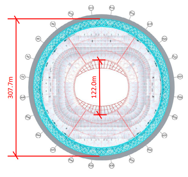 在卢赛尔体育场建设过程中郭正兴教授团队受中铁建工卢塞尔体育场项目部邀请,作为索结构工程国内知名专家为索膜结构施工提供了强有力的远程技术支持,帮助中铁建施工项目部解决和处理该新型屋盖索膜结构安装施工出现的一些关键技术问题。主要工作为多次参与远程视频会议讨论并帮助解决主次索索夹安装中出现的问题、48根环索撑杆的对称安装问题、96根交叉索的安装问题、交叉节点板、径向索CS1及其提升工装钢绞线的安装顺序问题、径向索撑杆的安装顺序问题、CS1和CS4提升安装问题、CS1就位阶段的张拉力问题、次索撑杆和水平次索安装问题、水平索的张拉及索力保证问题等。