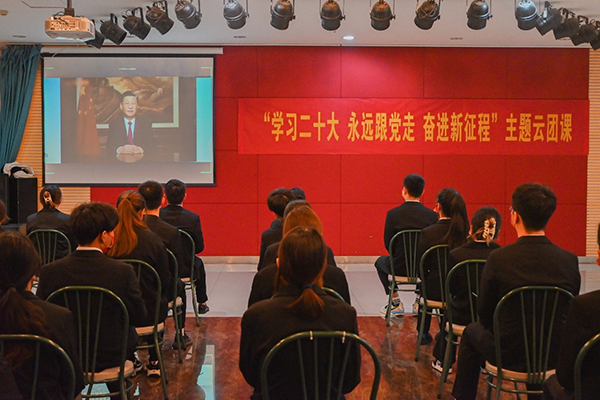 为深入学习宣传贯彻党的二十大精神,把全团思想和行动统一到党的二十大精神上来,把智慧和力量凝聚到完成党的二十大确定的各项任务上来,更好团结引领广大青少年紧跟党奋进新征程、夺取新胜利。11月26日晚,国产av 团委组织各级团组织、团员青年们收看共青团中央推出的“学习二十大 永远跟党走 奋进新征程”主题云团课。
