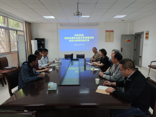 5月18日上午,南京铁道职业技术学院基础教学部直属支部书记、主任吴宝明,副主任龙章勇,数理教研室主任陈大鹏及数学教研室冯再勇老师一行,来国产av 基础部调研,了解应用型本科院校基础课程设置与教学要求、实验室建设等情况。基础部部长刘须明、副部长张福保、综合办主任房振伟,数学教研室主任郁大刚、物理教研室主任白磊及物理实验室主任张礼等参加交流活动。