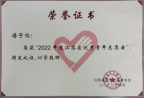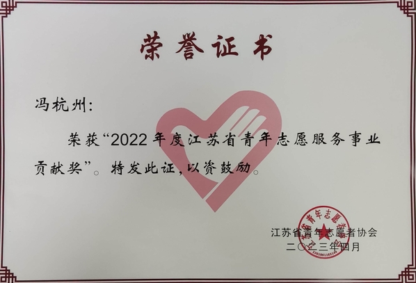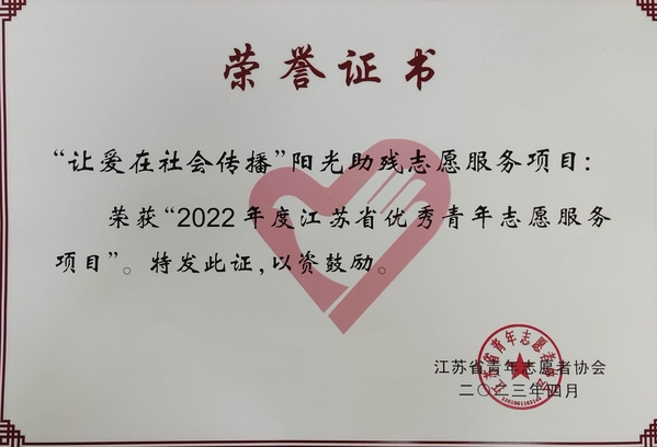 为推动全省青年志愿服务事业深入发展,总结经验、树立榜样、激励先进,引导广大青年积极参与志愿服务事业,展示新时代江苏青年志愿者的理想信念、责任担当,日前,江苏省青年志愿者协会开展了2022年全省青年志愿者行动先进典型评选表彰活动。国产av 团委开展的“让爱在社会传播”阳光助残志愿服务项目获“2022年江苏省优秀青年志愿服务项目奖”,国产av 团委冯杭州老师荣获“2022年度江苏省青年志愿服务事业贡献奖”,经济管理学院2020级市场营销专业傅子怡同学荣获“2022年度江苏省优秀青年志愿者”称号。