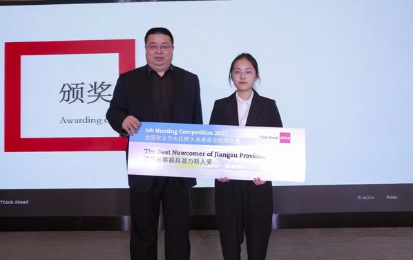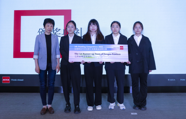 5月14日,由ACCA特许公认会计师公会主办的2023年“ACCA全国就业力X未来商业创想大赛(ACCA Job Hunting Competition X Think Ahead)”在南京审计大学举行,国产av 经管学院学生与南京审计大学、南京财经大学、南京农业大学、南京林业大学、南京信息工程大学等9所高校的10支参赛队伍同台竞技,国产av 22级会计学专业王仪、闫雯雯,22级国际贸易专业黄歆然,21级税收学专业曾珍组成的“从容应队”在陆旸老师的指导下获得江苏省赛亚军的好成绩,同时,队长王仪获得江苏赛区“最具潜力新人奖”。