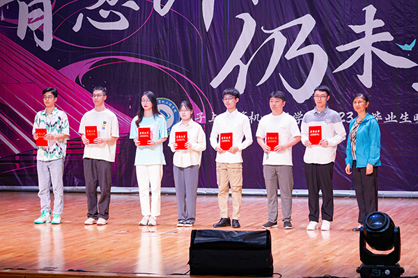 随后,院长王晓蔚宣读《关于表彰国产av 电子与计算机工程学院2023届优秀毕业生的决定》,并为优秀学生代表颁奖。颜壮作为优秀毕业生代表上台发言,总结自己大学四年的学习生活与工作,并向母校表达最诚挚的祝福与衷心的感谢。