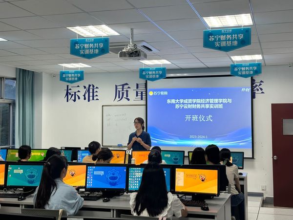苏宁云财实训基地自2019年建成,当前已进入第4个学年的实训项目。财务共享实训班独创“企业进校园”模式,将企业真实业务搬进校园,使学生在校园内即可体验真实企业工作环境,实现“真账真做”,接受企业导师直接指导,强化培养学生实践能力,提升学生就业竞争力。实训班面向市场,校企合作,产教融合,协同育人,有助于我院复合型、应用型、创新性人才培养和江苏省一流专业建设目标的实现。