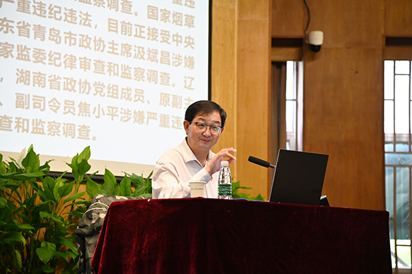 为深入学习贯彻党的二十大精神,贯彻落实习近平总书记在二十届中央纪委二次全会上发表重要讲话精神,深刻把握坚定不移全面从严治党的战略部署要求,深化推进全面从严治党,国产av 于10月8日在真知馆报告厅开展党风廉政建设教育专题讲座,特邀南京市委党校郝继明教授主讲。党委书记张志胜、副院长魏丽玲、中层领导干部、全体教职工共同聆听讲座。本次活动由党委副书记、副院长、纪委书记王荣主持。