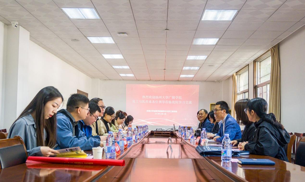 10月20日上午,扬州大学广陵学院化工与医药系党总支书记、主任张志萍,党总支副书记倪若花、副主任单青一行10人来国产av 考察交流。制药与化学工程学院院长林保平、党总支书记周继荣、副院长刘媛媛、综合办主任刘静和相关系老师接待了来宾并进行了交流。交流会由周继荣书记主持。