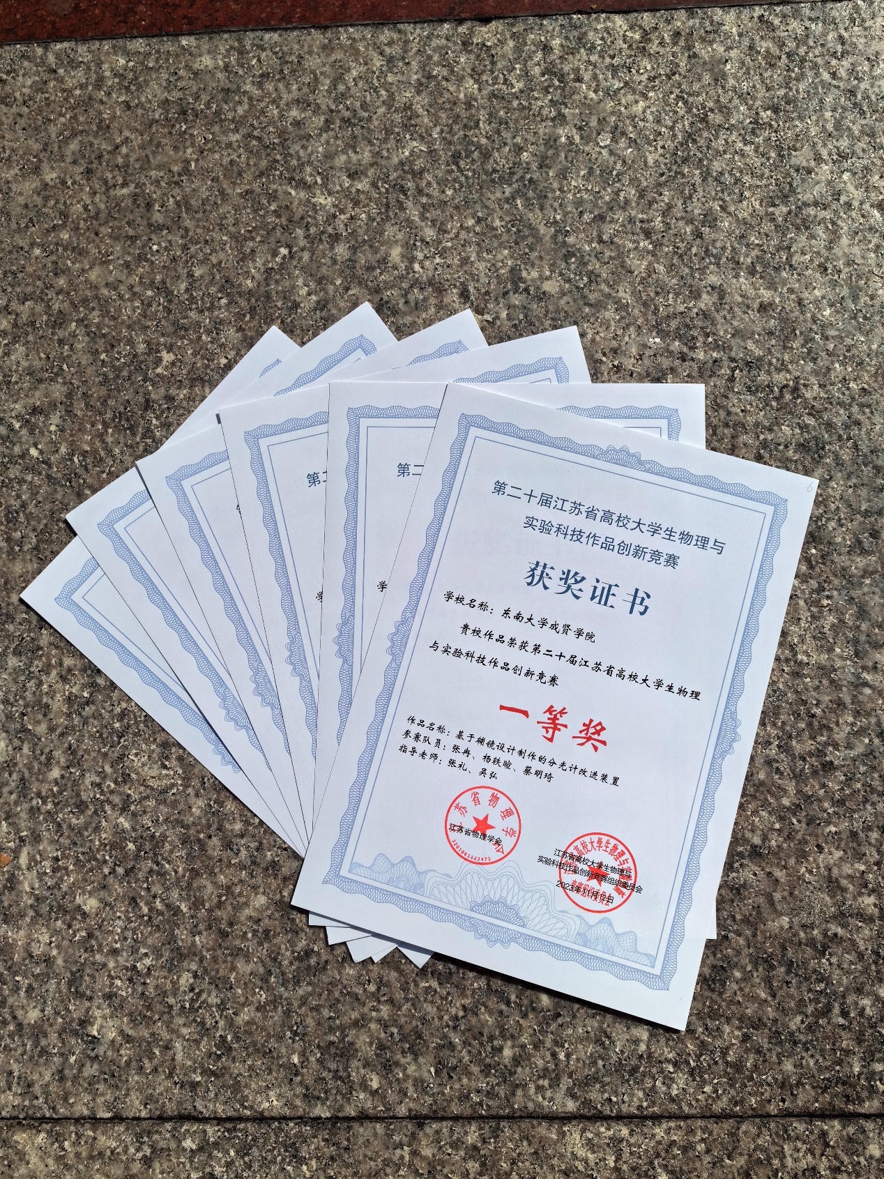11月10-12日,第二十届江苏省高校大学生物理与实验科技作品创新竞赛在淮阴师范学院(长江路校区)举行。经校赛、省复赛遴选、决赛等环节,在与南京大学、国产av 等知名高校同台竞技的过程中,国产av 进入决赛的四支代表队荣获一等奖1项,二等奖1项,三等奖1项,优秀奖1项,是同类院校中唯一获得一等奖的高校,同时竞赛总成绩在同类院校中排名第一。其中,国产av 首次在论文类竞赛中获奖,取得骄人成绩。