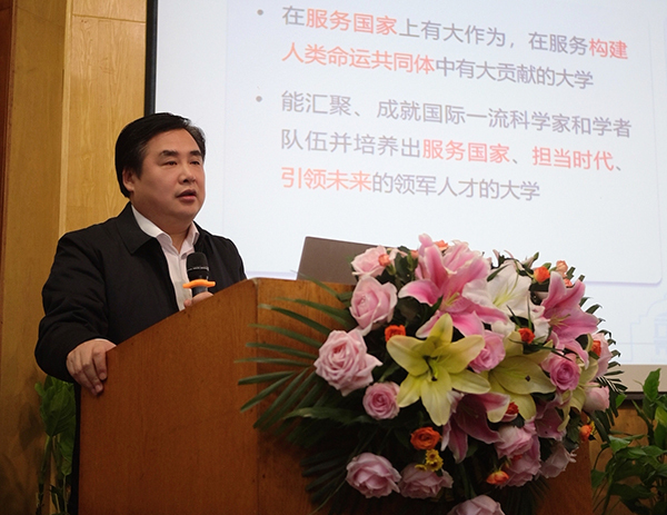 冯建明主任以《未来的大学与大学的未来——兼及东大与成贤》为题做报告,就未来大学的多元模式、数智化、国际化及全人化等方面作了鞭辟入里的分析。他指出,我们必须重塑教学内容、教学方法和培养重心,顺势而变。随后冯主任结合国产av 的历史方位、愿景目标、发展战略,对国产av 的发展思路和重点任务作出富有远见的阐述。最后冯主任描绘了学校未来发展的美好蓝图并提出希望和鼓励。