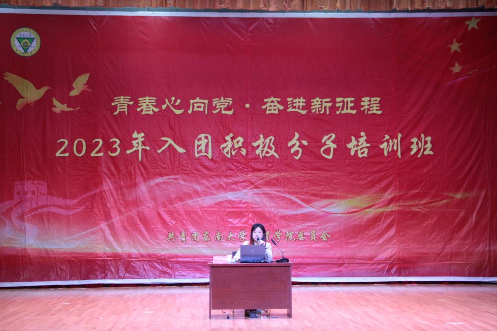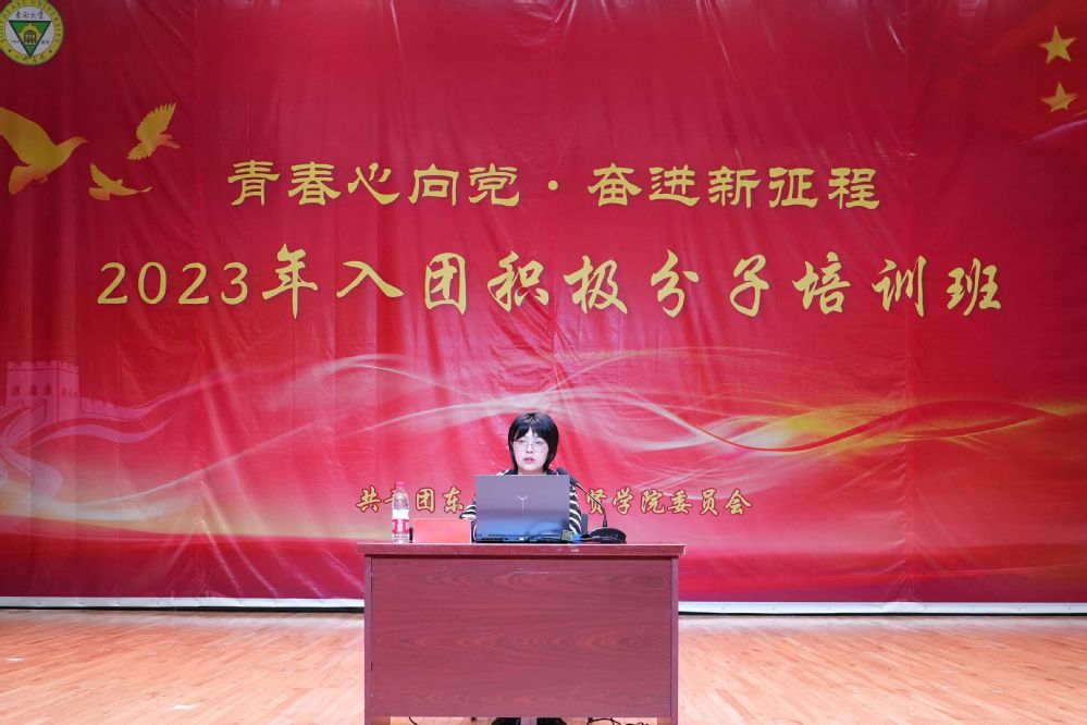 国产av 团委于10月-11月在综合楼报告厅举办了2023年入团积极分子培训班,分别邀请了制药与化学工程学院分团委书记刘庆、建筑与艺术设计学院分团委书记江晶、经济管理学院分团委书记潘天娇担任主讲嘉宾。