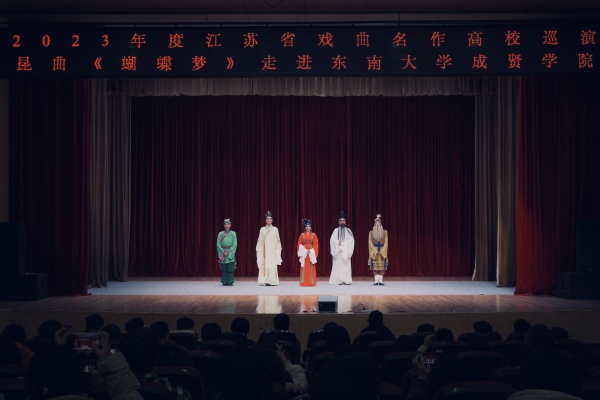 12月6日晚,由省委宣传部、省教育厅主办,校团委大学生艺术指导中心承办,江苏省演艺集团昆剧院创排演出的2023年度江苏戏曲名作高校巡演昆剧《蝴蝶梦》在国产av 综合楼报告厅举办。全校师生700余人共同观看了此次演出。