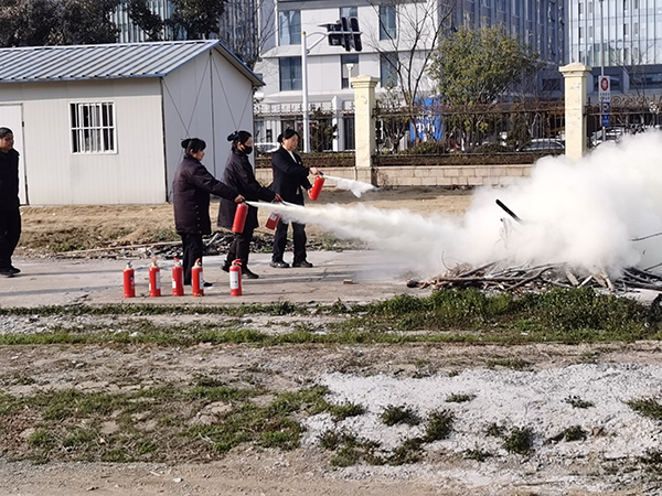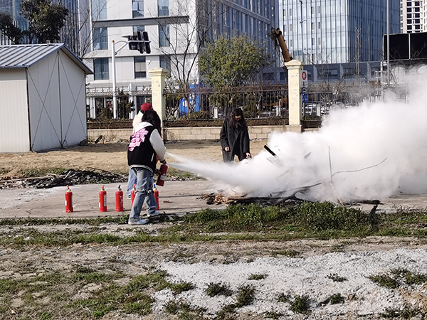 演练现场讲解了干粉灭火器等常用消防器材的使用方法,突发情况下应急疏散的基本原则、正确步骤和动作要领。理论讲解结束后,现场部分人员进行了灭火器实操,演练了初期火情的处置方法。