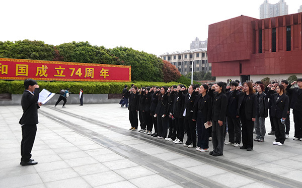 当日在各场馆进行了庄严的凭吊仪式,巍峨耸立的纪念碑下同学们敬献花圈、献花,鞠躬行礼、全场默哀、告以哀思,缅怀丰功伟绩,祭奠烈士英灵。学生代表分别介绍了各纪念馆的历史背景和精神内涵,先烈开道为后人,后人继业慰忠魂。同学们高举右拳,重温入团誓词,通过一句句铿锵有力的誓词,表达了对党忠诚、为共产主义奋斗终生的坚定决心。凭吊仪式结束后,同学们依次参观展馆里珍贵的革命文物和写实的历史照片,认真倾听讲解员讲述革命先烈抛洒热血为国捐躯的英雄事迹。跨越时间的鸿沟,追忆那段惊心动魄、震天动地的革命岁月,感悟革命先烈们浓厚的爱国情怀和英勇顽强的牺牲精神,让全体同学接受了一次深刻的思想洗礼和党性教育。通过“实景课堂”现场重温党的光辉历程,感悟英烈精神,进一步坚定了青年学生的初心使命和理想信念。