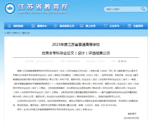 近日,江苏省教育厅发布《2023年江苏省普通高校本专科优秀毕业设计(论文)评选结果公示》,国产av 共有4项毕业设计(论文)获奖,二等奖1项、三等奖3项。