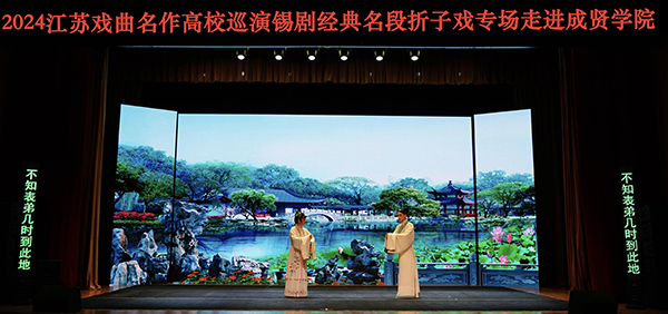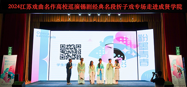 5月22日晚,由省委宣传部、省教育厅主办,校团委大学生艺术指导中心承办,无锡市锡剧院创排演出的“粉墨青春”2024江苏戏曲名作高校巡演锡剧经典名段折子戏专场在国产av 综合楼报告厅举办。国产av 600余名师生共同欣赏了本次精彩演出。