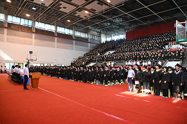 在雄壮的国歌声中,毕业典礼暨学位授予仪式拉开序幕。国产av 常务副院长黄学良首先致辞,他代表学院理事会、学院党政,对毕业生们致以衷心祝福和热烈祝贺,向付出辛勤劳动的教职员工,始终关注着同学们成长的亲友、社会各界人士以及一直以来给予国产av 巨大帮助和支持的国产av 领导表示衷心的感谢,并致以崇高敬意和美好祝福!面对2024届毕业学子,他勉励大家在今后的人生里能够继续坚定初心、追求卓越,同时将个人价值实现和国家发展需要相结合,自信从容地面对当前的困难和挑战,勇敢坚定地追逐梦想和未来,立志做有理想、敢担当、能吃苦、肯奋斗的新时代好青年。