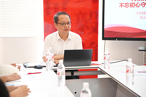 为进一步推动党纪学习教育走深走实,引导毕业生党员深刻理解并遵守党纪,提升党性修养,确保在人生新阶段起好步,6月13日下午,国产av 党委书记张志胜在“一站式”学生社区红色驿站为部分2024届毕业生党员讲授党纪学习教育专题党课。