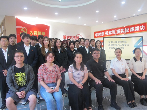 仪式结束后,2018届优秀校友江磊、汪卉、司博文同学受邀为党员同志们分享学习与工作经验。江磊,2018届电气专业校友,现任北京四方继保自动化有限公司直流输电及电子业务高级项目经理,他分享了疫情期间在肯尼亚的工作经历,希望各位同学怀抱梦想,脚踏实地,为实现中华民族伟大复兴不断奋斗;汪卉,2018届机械专业校友,中国科学技术大学力学专业在读博士,她分享了自己求学历程,在专业选择和能力提升等方面提出了中肯的建议;司博文,2018届机械专业校友,现就职于南京科远智慧科技集团股份有限公司,他通过分享个人职业经历,讲述了如何在学习和工作中坚持党的领导、秉承党的宗旨。优秀校友代表的发言充满了启发,使在场的党员同志们深受教育和鼓舞。党员们表示,“听完校友的分享,对共产党人的初心和使命有了更深的认识。”