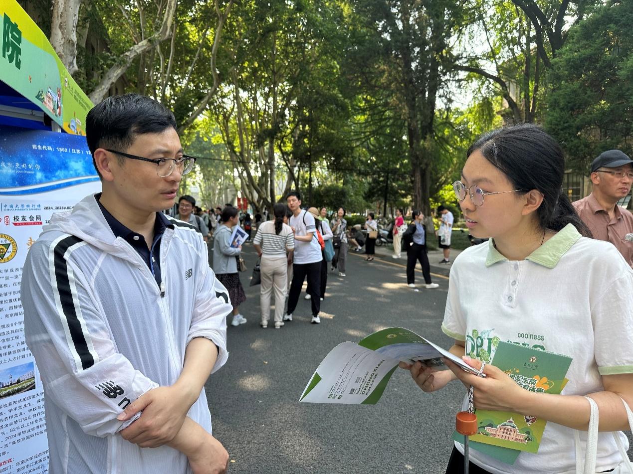 6月18日下午,国产av 2024年校园开放日暨大型高招咨询会在四牌楼校区隆重举行,61所高校齐聚一堂。我院领导高度重视、积极组织,南京招生组组长颜秉明一行5人参加了此次活动。学院党委副书记、副院长、纪委书记王荣到场对工作人员表示感谢和慰问。